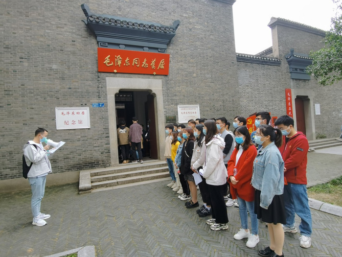 大家来到毛泽东旧居纪念馆,研究生第二党支部纪检委员谢冉给大家做了讲解。武昌毛泽东旧居是1927年上半年毛泽东同志在武昌从事革命活动时的居住地,旧居是栋晚清民居式建筑,坐东朝西,砖木结构,青砖黑瓦。原房1956年因修武昌公园而拆除,现在的房屋系1967年按原貌重建。参观的过程中,研究生第三党支部纪检委员刘佳琪给大家讲了毛泽东完成《湖南农民运动考察报告》这部光辉著作的故事,故事让大家理解了农村革命的伟大意义。